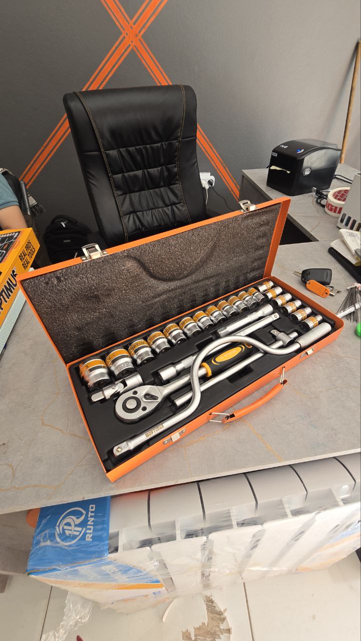 ​التنظيم: يأتي الطقم في صندوق معدني متين مع قواطع داخلية لكل قطعة، مما يسهل عملية التنظيم والوصول السريع إلى الأداة المطلوبة.