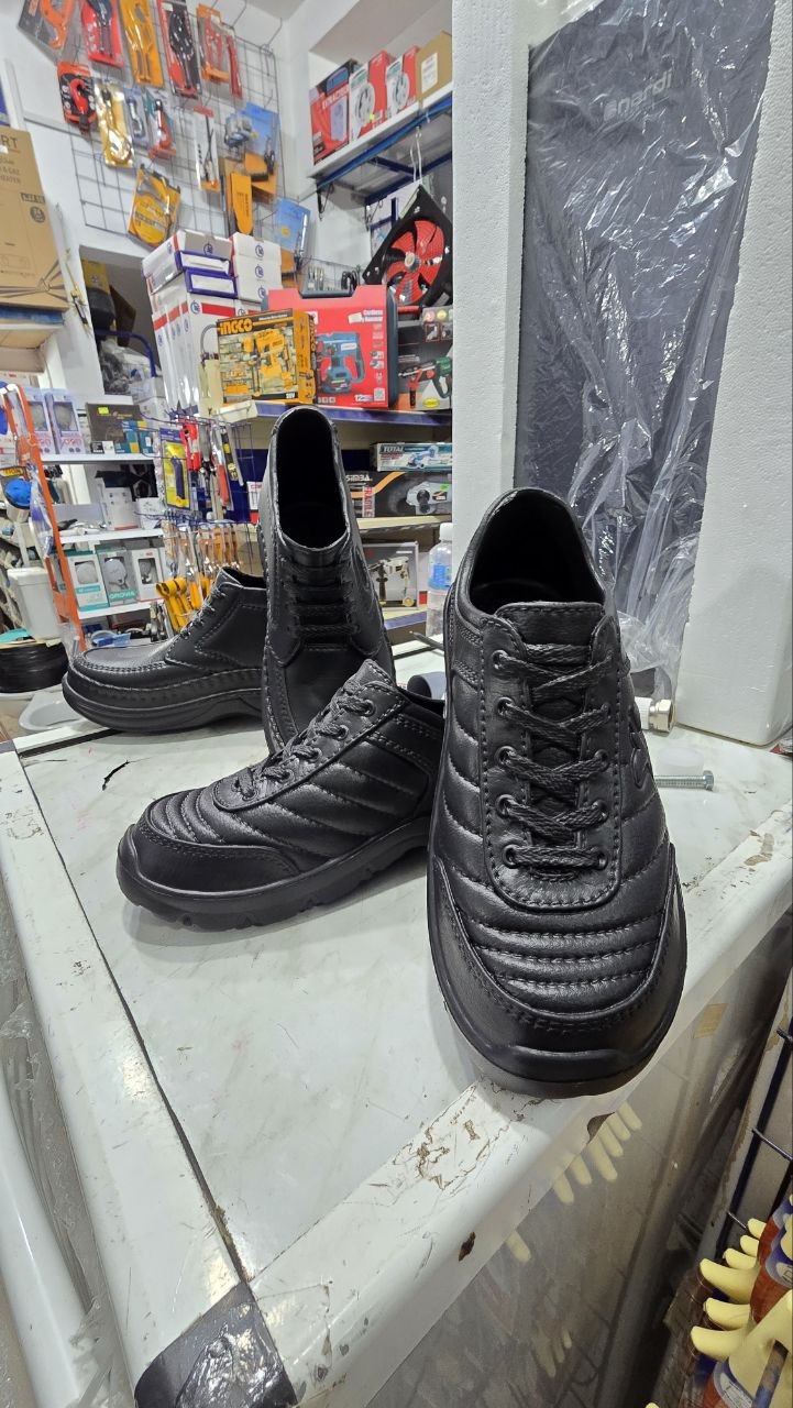 يأتي الموديل 02 كحذاء بلاستيكي متطور يجمع بين مظهر الأحذية الرياضية (Sneakers) وبين متانة الأحذية الواقية. يتميز بلونه الأسود الكامل وتصميمه المبطن الذي يمنحه لمسة عصرية وأنيقة.