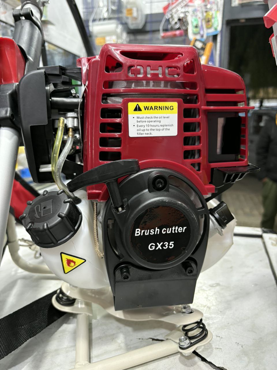 > تنبيه: تأكد دائماً من أن وضعية المحرك على الظهر تسمح بتهوية جيدة، ولا تنسَ فحص زيت المحرك قبل كل استخدام لأن المحركات رباعية الأشواط حساسة جداً لمستوى الزيت.