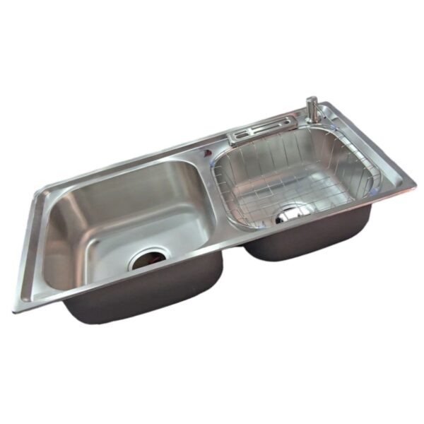 حوض مطبخ مزدوج من الفولاذ المقاوم للصدأ مع ملحقات