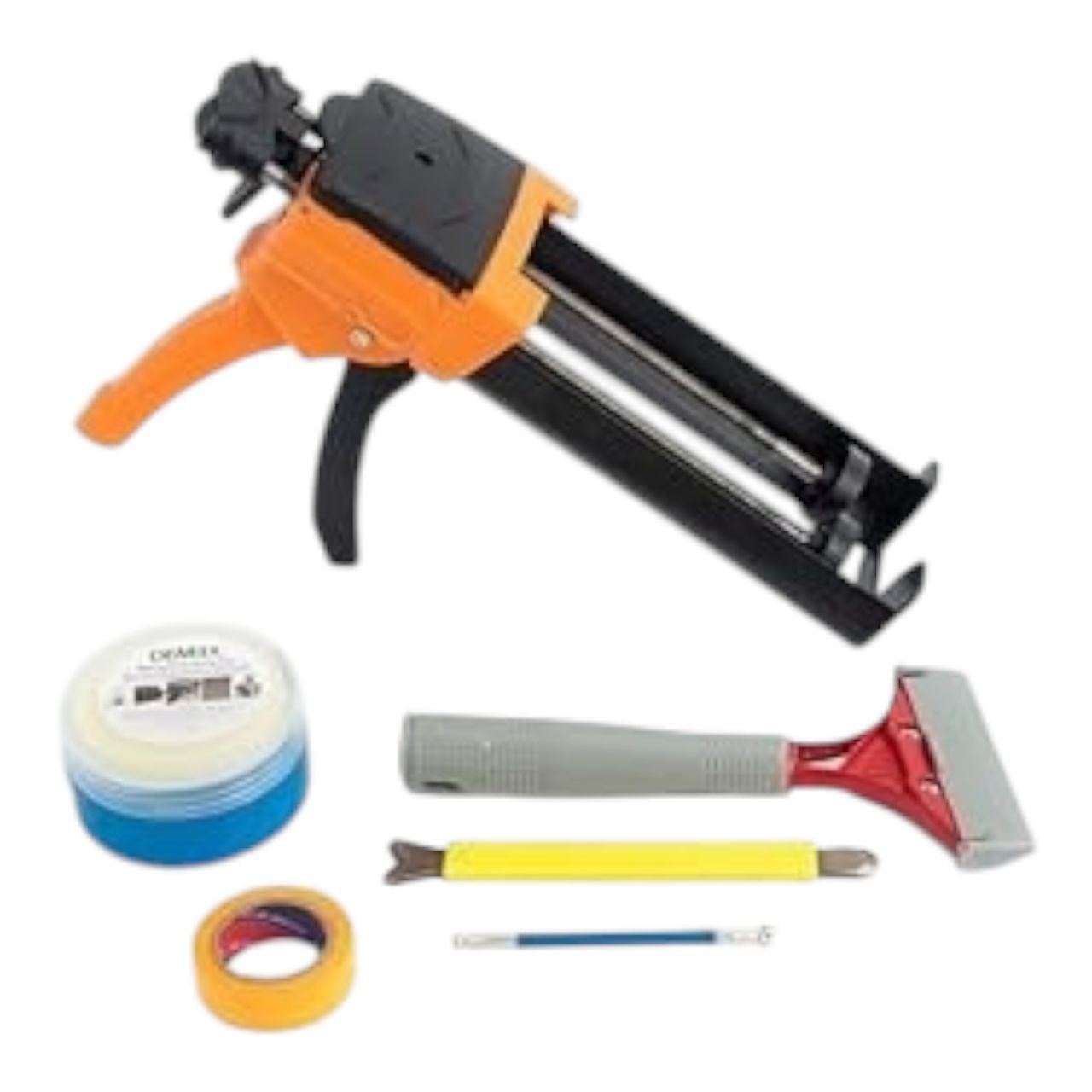 * المسدس (Pistolet): يتميز بهيكل معدني صلب ومعزز ليتحمل لزوجة مادة الإيبوكسي العالية.