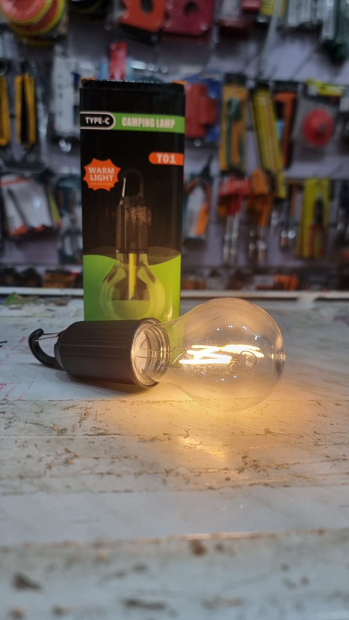 مصباح قابل للشحن ، بلون أصفر كلاسيكي ، و حامل بخطاف للتعليق ، شكل جميل بسعر رائع .