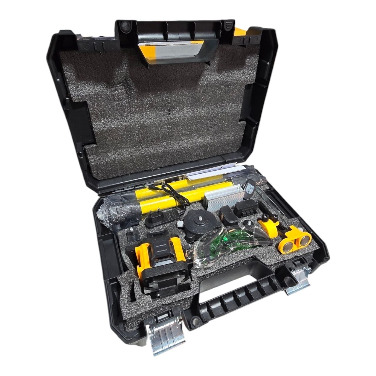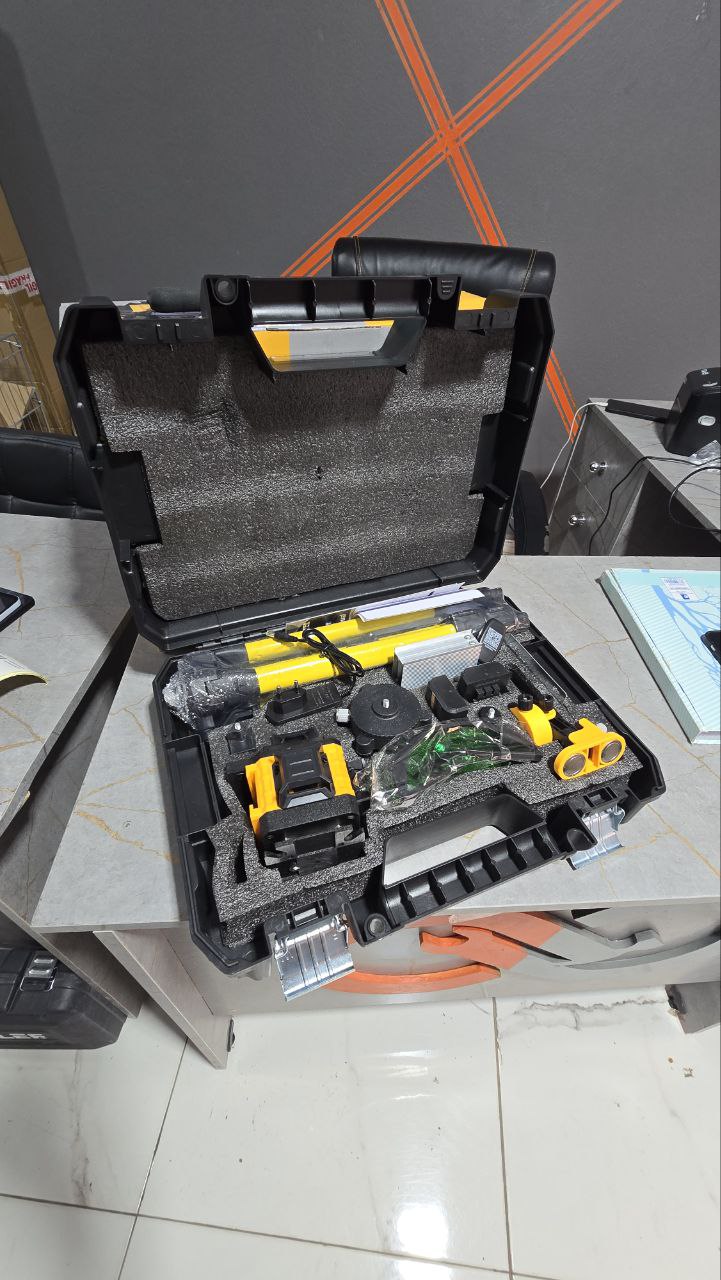 يوفر هذا الجهاز دقة متناهية في تحديد المستويات الأفقية والعمودية بفضل تقنية الليزر رباعية الأبعاد (4D)، مما يجعله الخيار الأول لمحترفي البناء، تركيب السيراميك، والأسقف المستعارة.