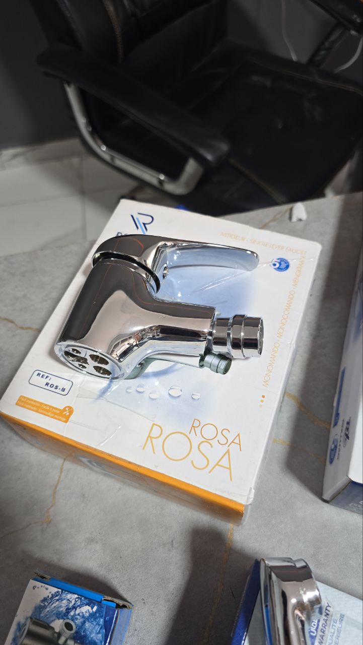 باقة خلاطات تحتوي على ، خلاط مياه حوض استحمام  » baignoir  » ، خلاط مياه مغسلة يدين  » bidet  » ، خلاط مياه مطبخ  » اختياري بين جداري ، عادي مخرج مائل ، او عادي مخرج مقوس ، مع حنفية غسالة ملابس ، او شطاف اختيارية مجانية .