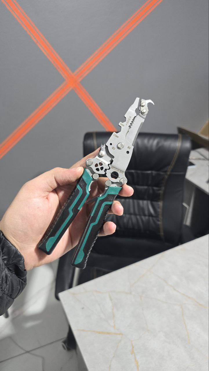 الوظائف: تجريد الأسلاك، قطع الأسلاك، كبس الوصلات، وثني الأسلاك.