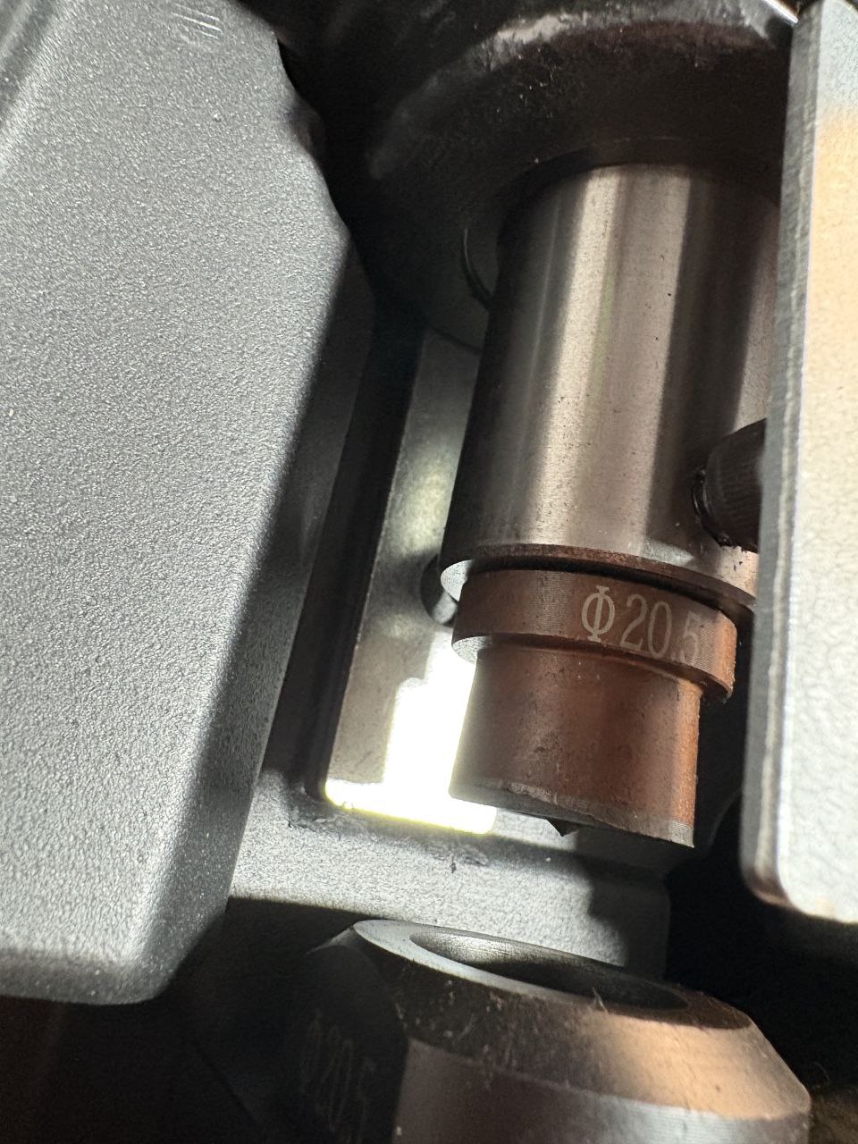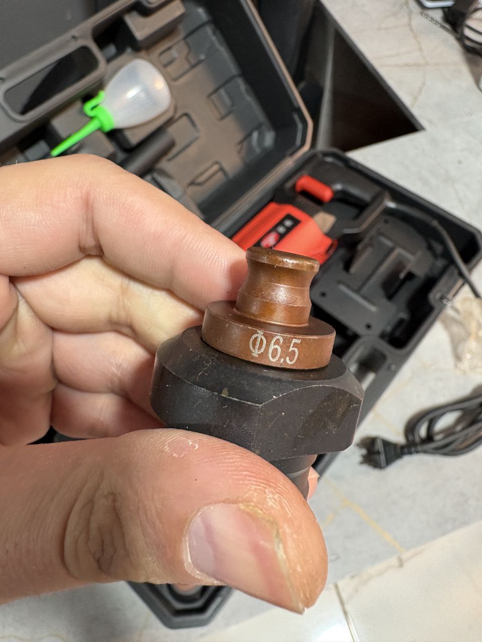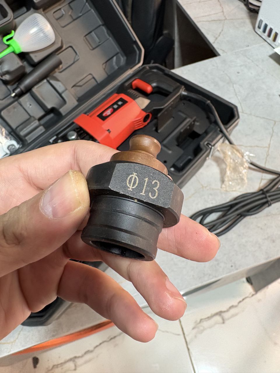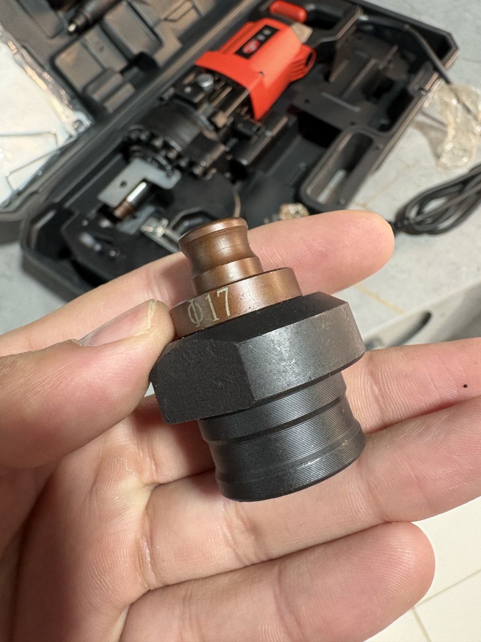 * رأس الثقب (Die Set): يأتي الجهاز مع مجموعة من القوالب (Dies) بمقاسات مختلفة (مثلاً: 6.5 ملم، 9 ملم، 13 ملم، 17 ملم، 20.5 ملم).
