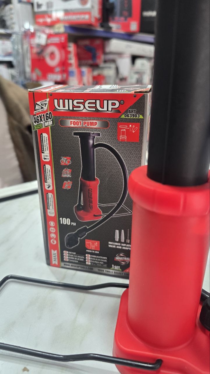 مضخة هواء يدوية بالقدم Wiseup هي أداة قوية ومريحة لنفخ الإطارات والمعدات الرياضية بسرعة وسهولة. تتميز بتصميم متين ومريح، مما يجعلها مثالية للاستخدام في المنزل أو أثناء التنقل.