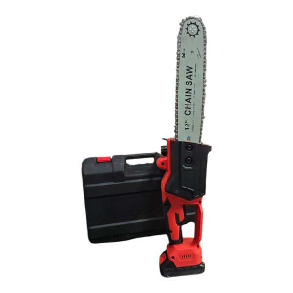 منشار أخشاب كبير ببطاريتين ، مع مضخة يدوية للتزييت الأوتوماتيكي للسلسلة