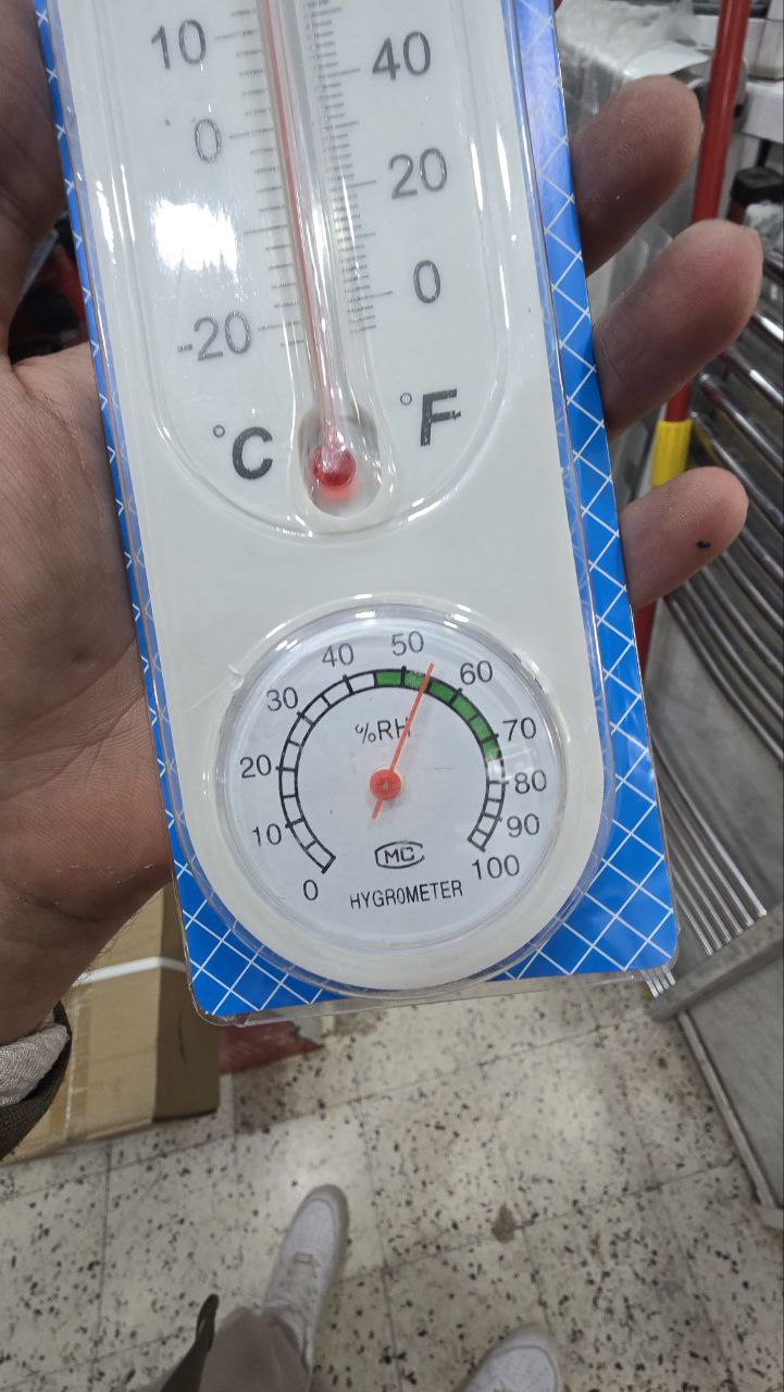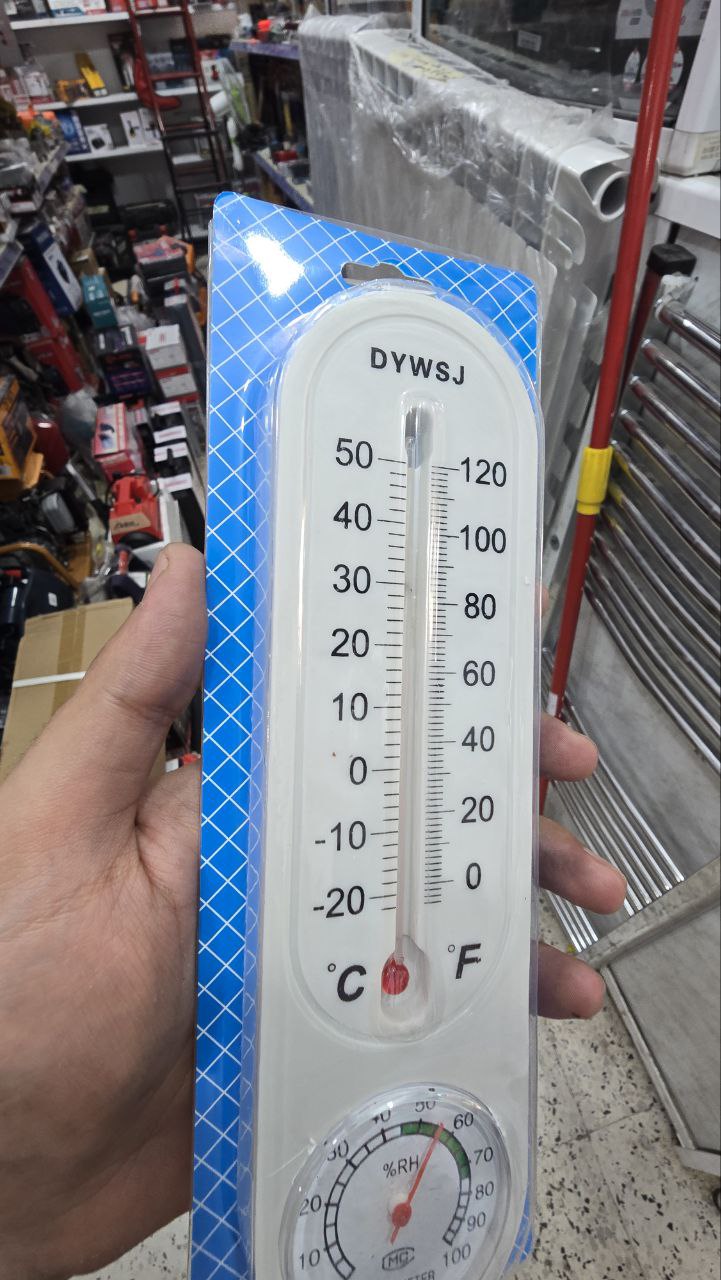هذا المنتج هو جهاز قياس مزدوج مصمم لقياس درجة الحرارة (Thermometer) والرطوبة النسبية (Hygrometer) في محيط معين (غالباً للاستخدام الداخلي أو في الأماكن المغلقة مثل البيوت الزجاجية/الحظائر). يتميز بتصميم بسيط وكلاسيكي.