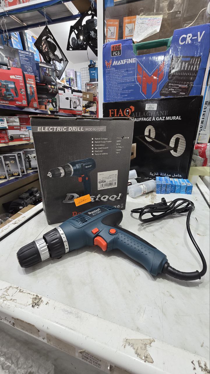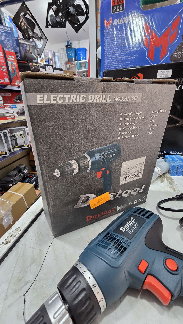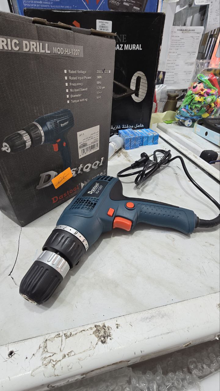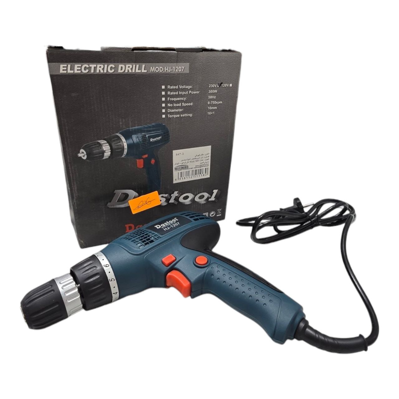 ​هذا المنتج هو عبارة عن مثقاب كهربائي ومفك براغي سلكي مدمج، يحمل اسم الموديل HJ-1207 وينتمي إلى ماركة Dastool. يتميز الجهاز بتصميم عملي ومريح لليد، حيث يغلب عليه اللون الأزرق الداكن/الرمادي مع لمسات واضحة باللون البرتقالي أو الأحمر على زر التشغيل.